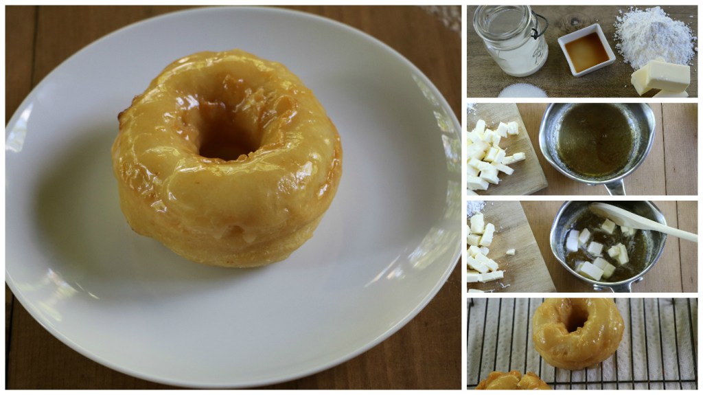 The Finding Harmony Blog post included two possible caramel glaze recipes; one used brown sugar and the other white sugar from the cook book Homemade Doughnuts: Techniques and Recipes for Making Sublime Doughnuts in Your Home Kitchen by Kamal Grant (Quarry Books, 2014). The white sugar recipe was tricky since it involved heating the sugar to caramelize it, but the flavor was truly superior.