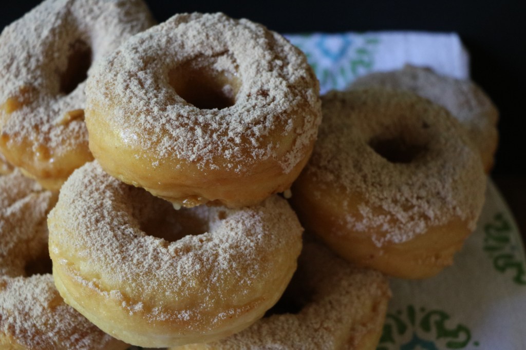 In the comments on the Finding Harmony Blog post, several people stated that they felt like potato was the secret ingredient needed to make the fluffy doughnuts. First I tried yeast-less potato dough, then potato dough with yeast. I also gleaned ideas from this recipe for Amish Doughnuts.