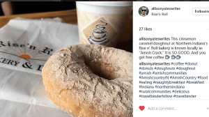 When Allison came home after spending a day in Northern Indiana doing research for an article she is writing about the Amish community and the RV industry, she told me she had sampled the best doughnut of her life. She said the locals call them “Amish Crack” because they are so delicious and addictive. I’m not a baker; most of my cooking involves dishes that are tasty – but fast! (Visit the Yates Yummies blog) Roy always laughs and says everything I make takes 15 minutes tops, so I’m not geared to the patient process of waiting for dough to rise. Plus I lack a basic understanding of the chemistry aspect of baking. However, after Allison found a post on Finding Harmony Blog that documented the author’s attempts at duplicating Rise’n Roll Bakery’s Cinnamon Caramel Doughnut, I had a desire to join in on the search for a recipe. What a wild ride! After several attempts I managed to cover every surface of my kitchen with a thin layer of flour and/or confectioners sugar and had some spectacular failures (think rock hard or envision a tire deflating).   I’ve documented what I learned below, along with the recipe I finally settled on. If anyone out there tries it, I would love to hear feedback! Likewise, if there is a better recipe for these delicious morsels, please share! To print out the recipe, scroll down to the bottom of this post and click on the “button”.