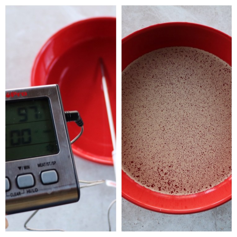 1/2 cup of warm water (between 90 and 100 degrees Fahrenheit)